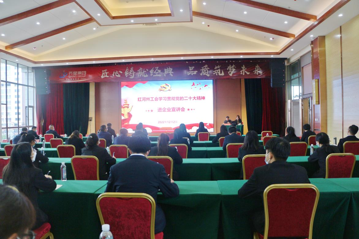 12月2日,紅河州總工會(huì)深入集團(tuán)公司開展黨的二十大精神進(jìn)企業(yè)宣講活動(dòng),特邀云南省工會(huì)共青團(tuán)婦聯(lián)干部學(xué)校朱敏老師就黨的二十大精神作專題宣講,州總工會(huì)黨組成員、副主...